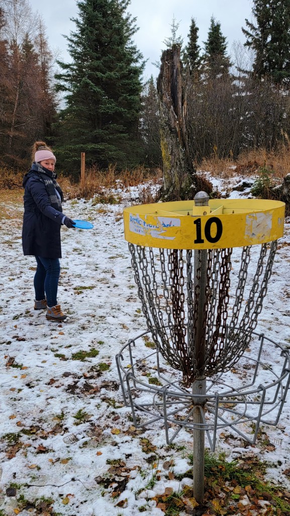 With an afternoon flight looming, our final morning provided just enough time to mark off our remaining few Google Maps pins. We started with a hearty breakfast of benedicts at Snow City Cafe, followed by a chilly round of disc golf at Kincaid Park, which features 40 miles of walking, biking and ski trails, beaches along Cook Inlet, airplane viewing by the airport approach, and several resident moose.