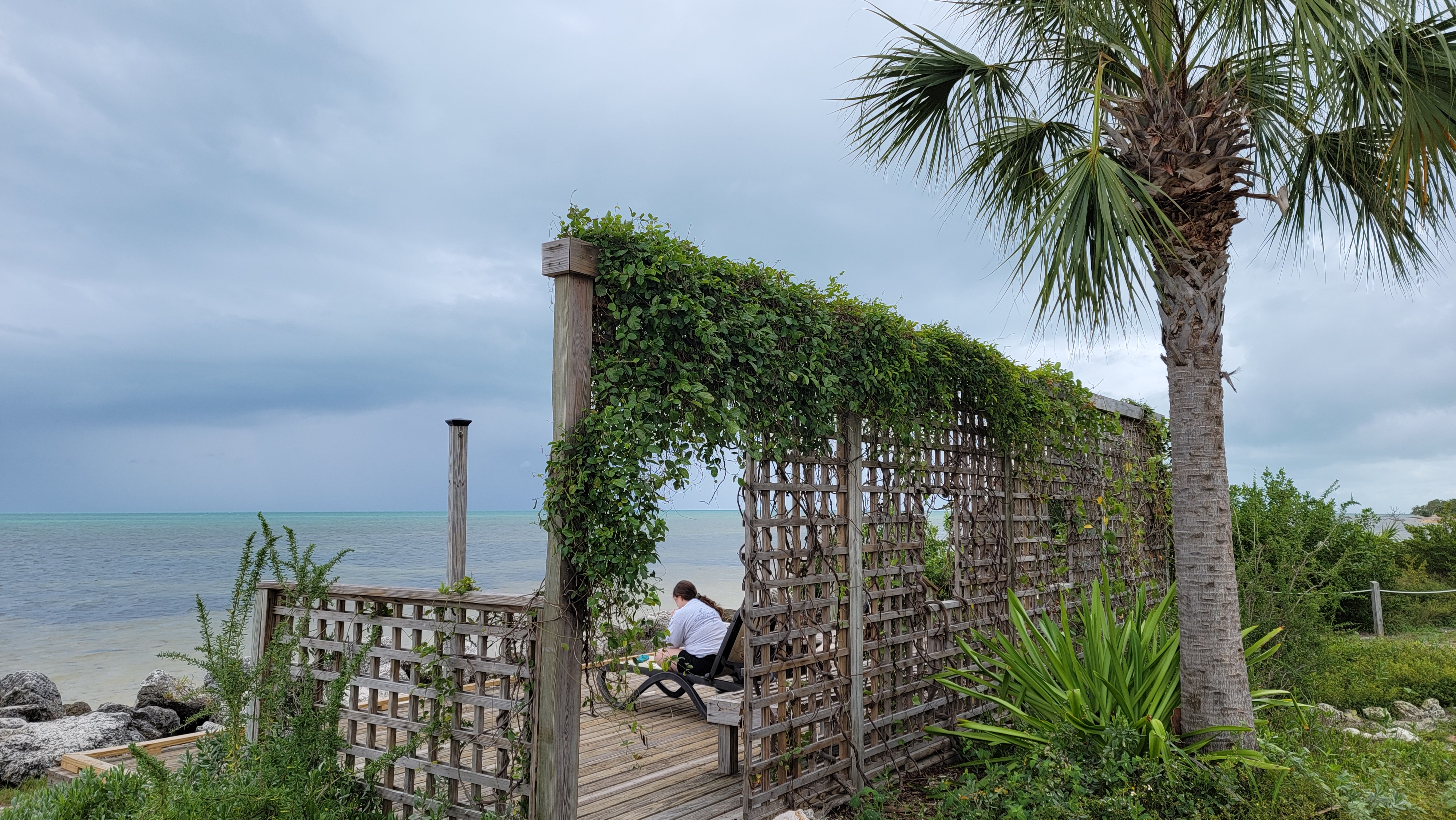 With a couple chapters paged to the left, we marveled as we crossed the Seven Mile Bridge, making our next stop at Bahia Honda State Park, one of my favorite stops on my teenage sailing journey. On that trip, we moored in the tiny harbor on the western tip of the key, and camped on dry land instead of sleeping on the open deck. This time around, we strolled first up the Old Bahia Honda Bridge, which extends a few hundred feet out over the sea, with an altitude that provides a bird’s eye view of the island below. With a sharp breeze off the passing storms, I ratcheted down the tightness on my ball cap by one more node; as we paused for a selfie, a young father behind us experienced the full force of the wind, as his umbrella went tumbling away and he lunged after it, all while trying to maintain a grip on a stroller. We returned to sea level and the expansive Calusa & Loggerhead Beach to wade in the bathtub-like aquamarine water.