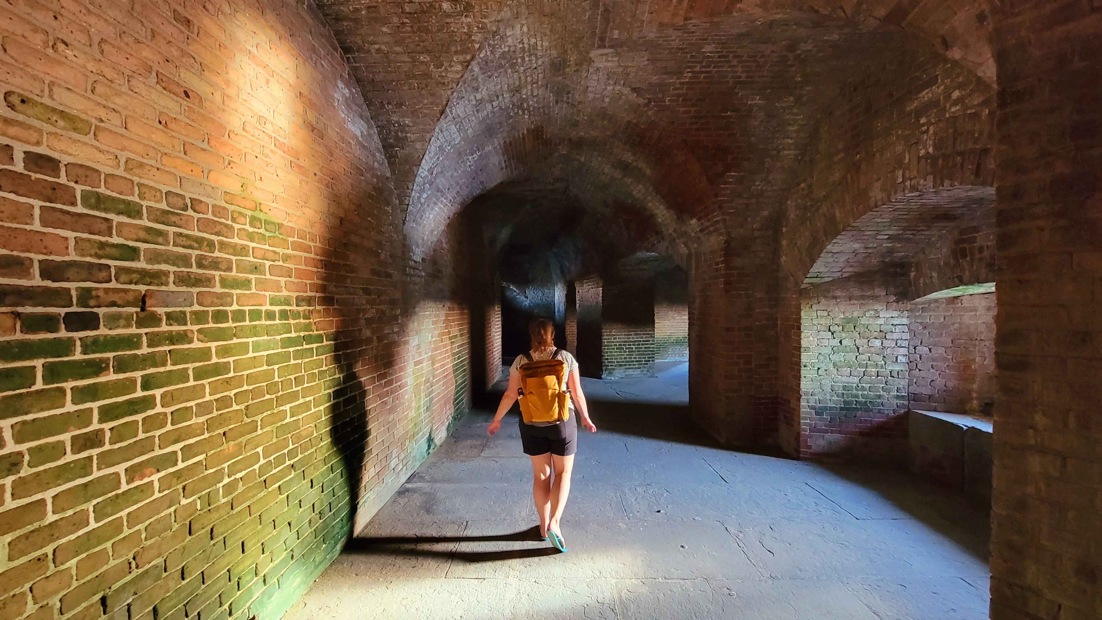 After checking in to L’Habitation Guest House, a circa 1874 B&B half a block off Duval, the 75 degree afternoon was inviting us outside, so we walked to Fort Zachary Taylor to peruse the remainder of a pre-Civil War bastion that currently houses the largest collection of Civil War armament in the country. The tunnels and corridors take on a vibrant life as the sun gets lower in the sky, with golden beams dancing through the windows and doorways. As a classically-trained singer, Kjirsti appreciated the acoustics of the arching brick ceilings; at the far end of the battery, a photographer staged a sharply dressed couple in an engagement photoshoot. Along the walk to the fort, military and political history lovers can tour the Truman Little White House or the Coast Guard cutter Ingham. Other local favorites include the Mel Fisher Maritime Museum and the Key West Shipwreck Museum.