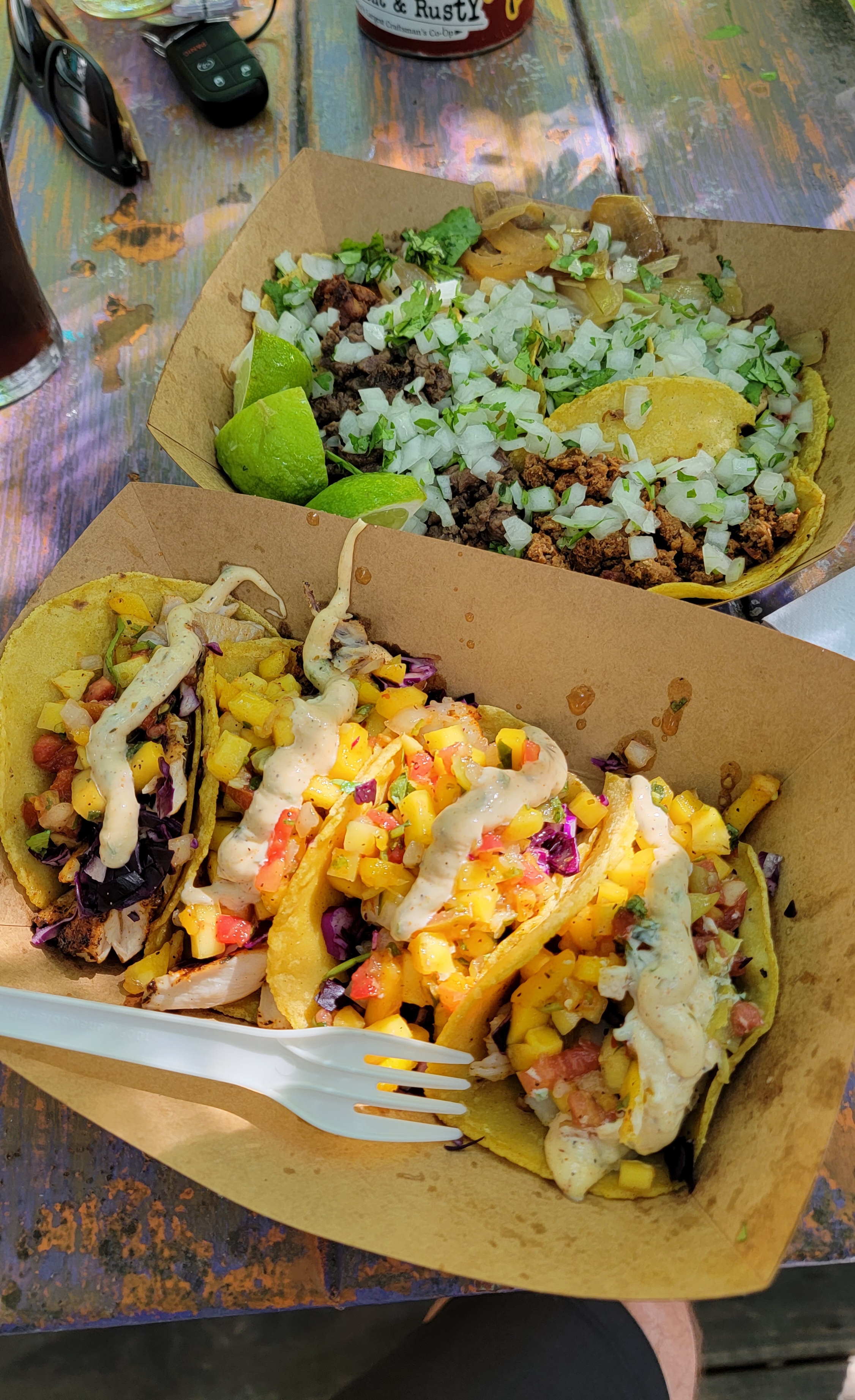 Around lunchtime, we eagerly parked at Florida Keys Brewing Company to commemorate a special milestone: our 300th brewery visited in our travels across (at the time) 46 states! We celebrated with a couple pints off the seasonal menu, and some astounding street tacos from Tacos Jalisco food truck. We savored our meal as the resident cat slept nearby in a shallow cardboard box, a feline take on living on island time.
