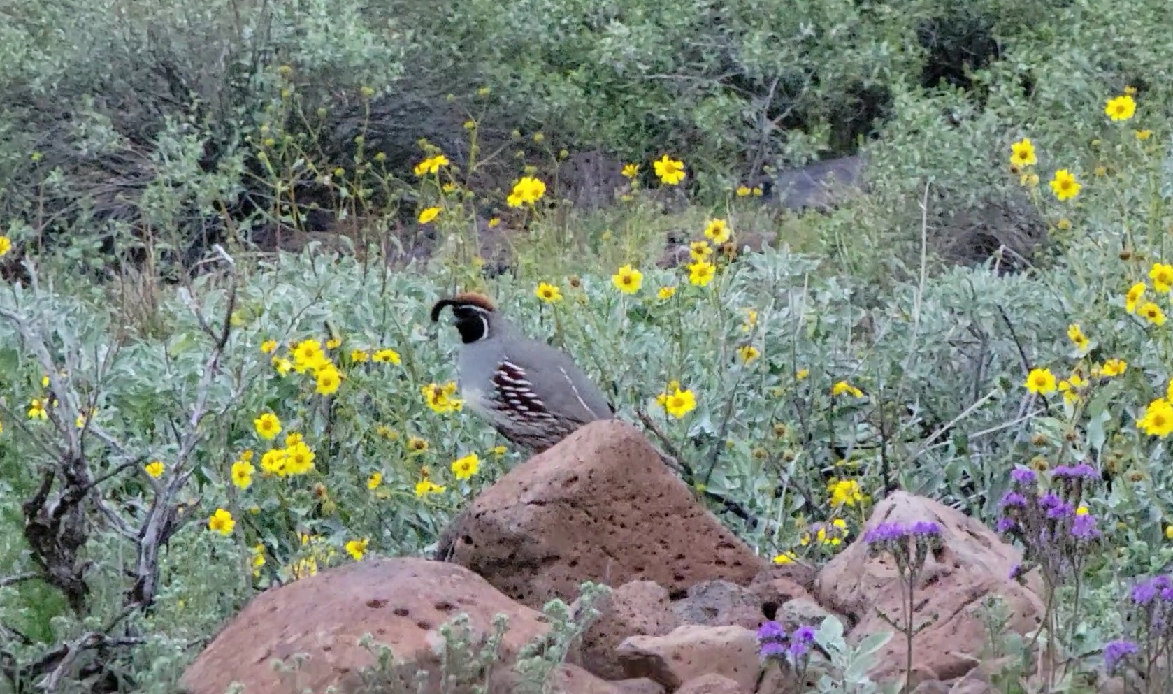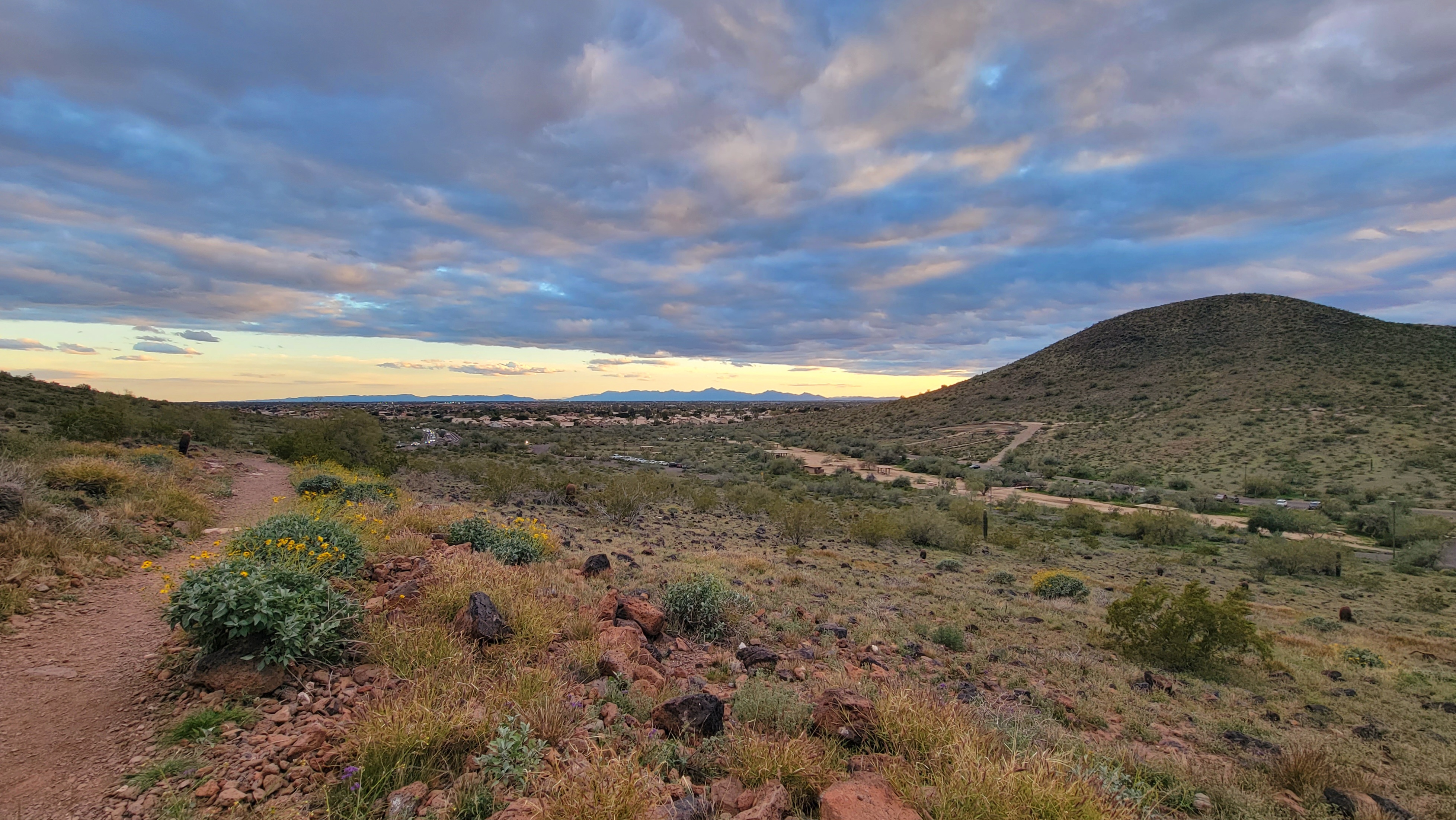 The first morning we hiked in the Sonoran Preserve, a 9600-acre complex offering 36 miles of trails. We started at the Apache Wash trailhead and made a 2.65-mile counterclockwise loop utilizing the Sidewinder, Apache Vista, Apache Wash and Ocotillo trails, featuring a diverse array of desert flora, from Saguaro and Cholla cactus to California Poppies and Desert Lupine in bloom.