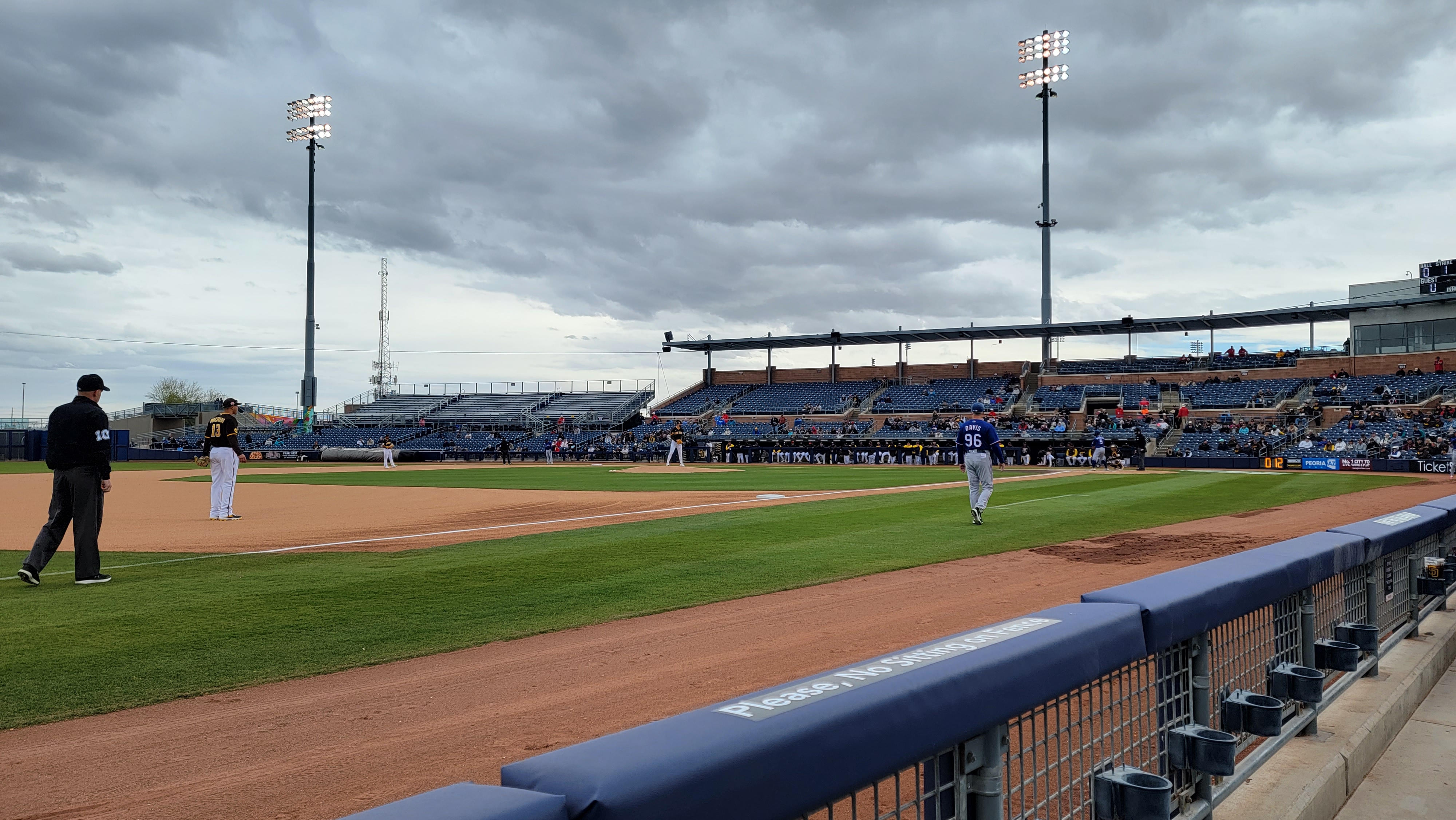 The stadium seating and experience is more comparable to a minor league game than the major leagues. We chose different areas to sit in each game: Game 1 directly behind the first base dugout, the second game in the front row just past third base, and the final game in the second level along the right field line. All are great choices, but being directly behind the low rail by third base is an incredible experience; the game moves at hyperspeed from this vantage point (not to mention it is a great place to shag foul balls or snag one from a passing player).