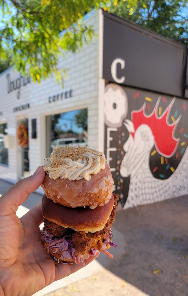 Whether you’re here for the National Parks and the great outdoors or just passing through, hop out of your Jeep and step up to the tile building as white and clean as my uncle’s Reeboks. Enter Doughbird, a purveyor of donuts, coffee and chicken in downtown Moab. Founded in 2019, Doughbird operates on a limited schedule (read: the early bird gets the donuts, and the midday bird gets the chicken). Closed winters, Doughbird just reopened for the season on March 9.