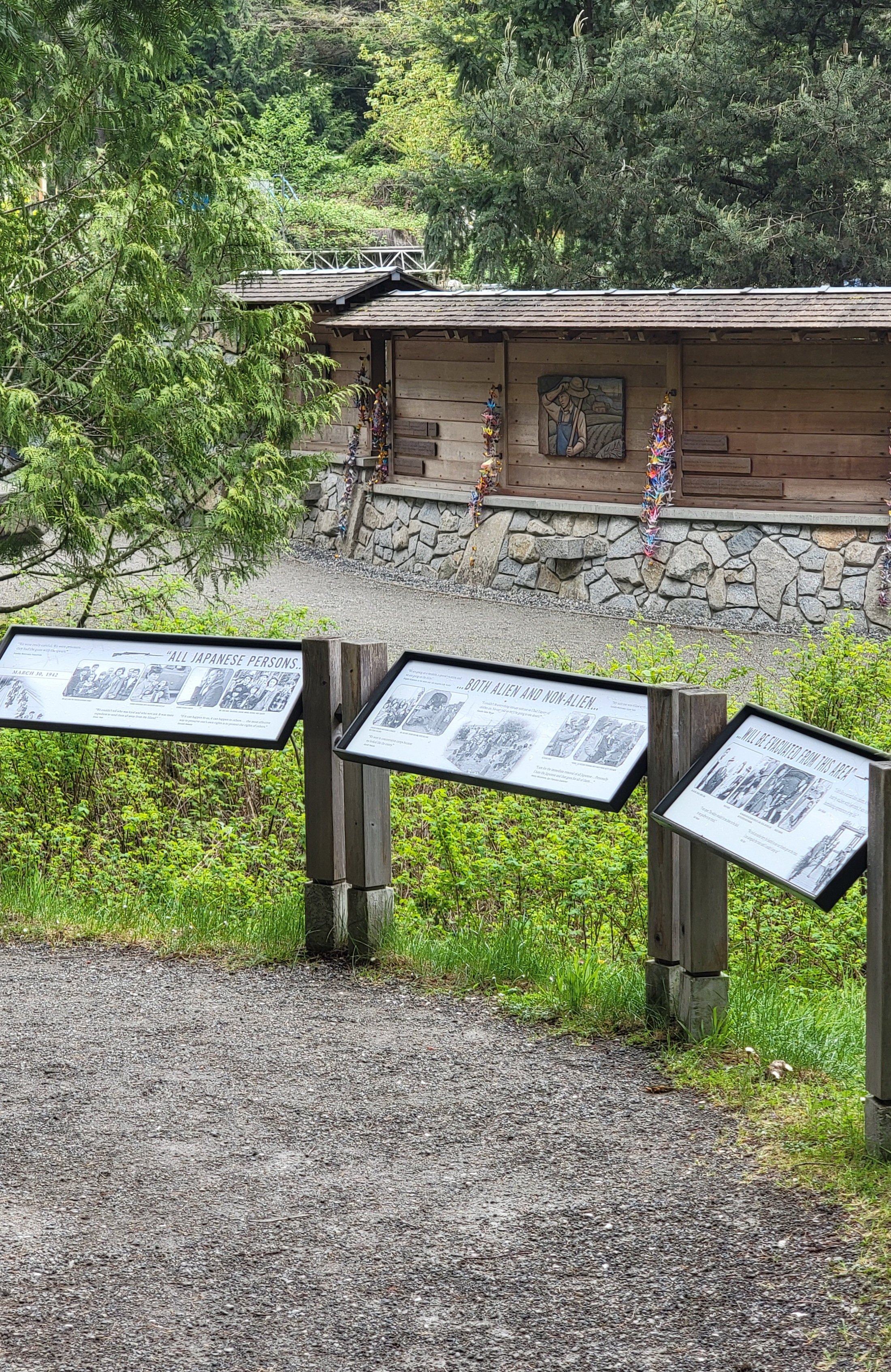 I strongly encourage a stop here on your next visit to Bainbridge Island, especially if you have children old enough to understand what happened. As with any memorial, sacred space or place of reflection, please show respect for the land, the people, the culture and the history. The memorial is located at Pritchard Park, on the south side of Eagle Harbor, just minutes from the Seattle-Bainbridge Ferry. More information is available on the Bainbridge Island Japanese American Community website or the National Park Service website.