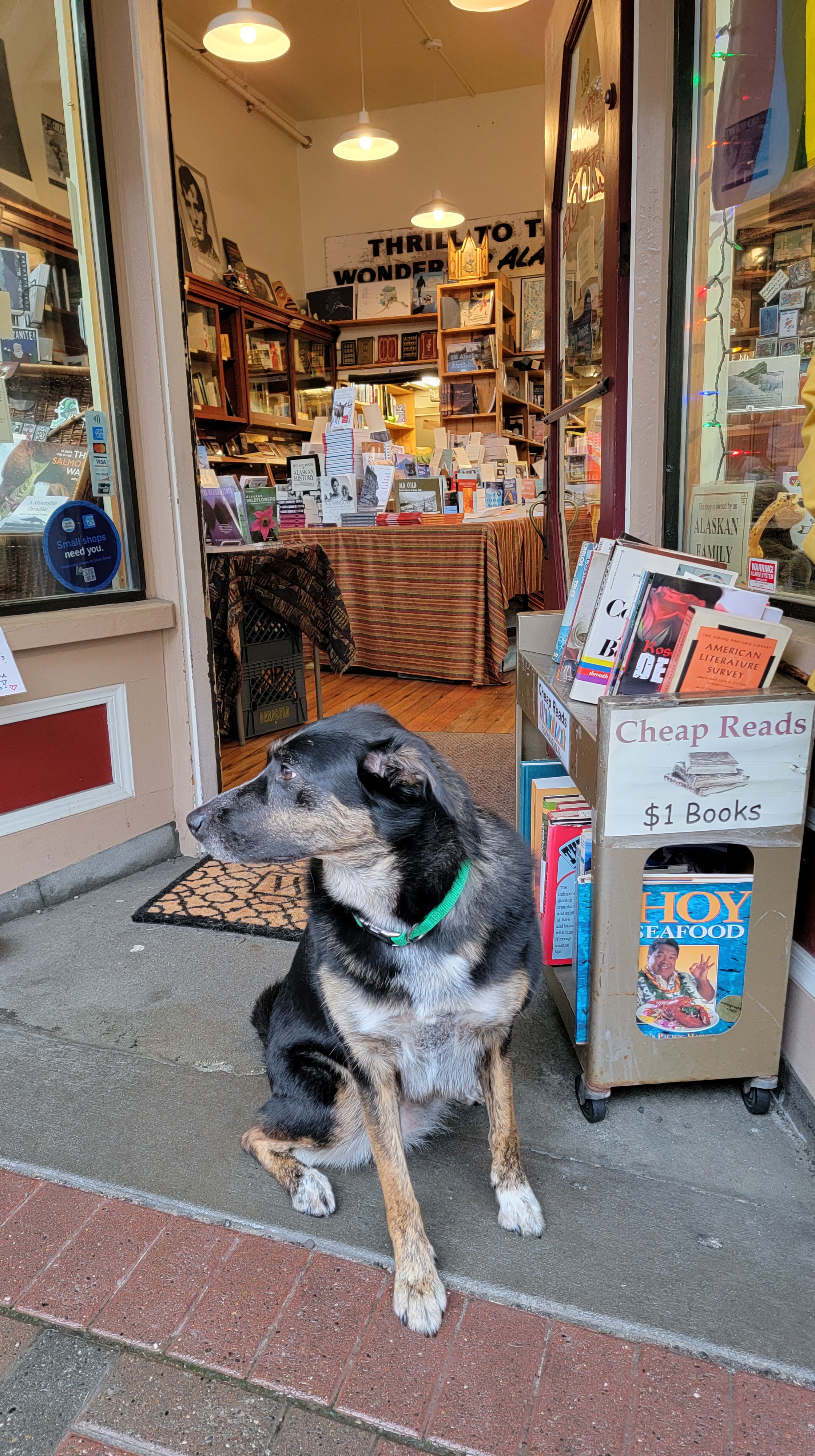 The compact downtown features a diverse mix of shops, local businesses and foodie hangouts. Once the cruise ships unload for the day, the crowds on the street swell immensely, so the more you can do first thing in the morning or later in the evening, the better. Our jackets might have been wet, but our spirits were not dampened, so we spent the greater part of the day wandering through town, marveling at the cascades spilling down the mountains towering to the north, and equally agape at the size of the cruise ships at the wharf. Fun finds included a copy of Nelson’s Trafalgar from the aptly-named Rainy Retreat Books plus pats on the head for the goodest boy patiently waiting for his owner outside. Back by the cruise pier, Frost + Fur offered a cozy welcome and even cozier clothing, such as the screen-printed pullover featuring the owner’s original art of the fleet of Alaskan ferries. Next door at Hearthside Books, we were smitten by locally-authored The Bear in the Blueberry, which we brought home for our (at the time) unborn little one, who ironically now is obsessed with berries.