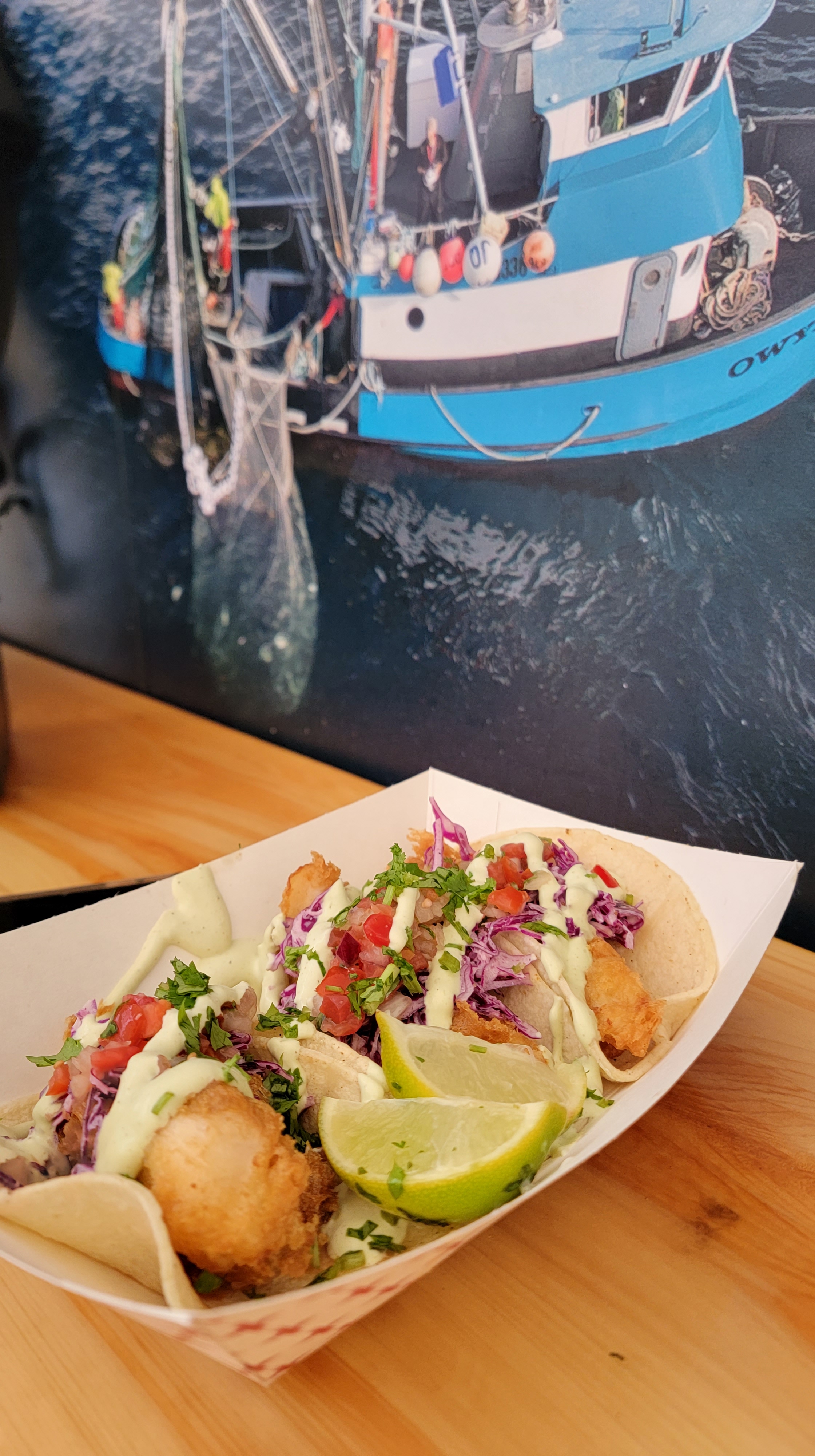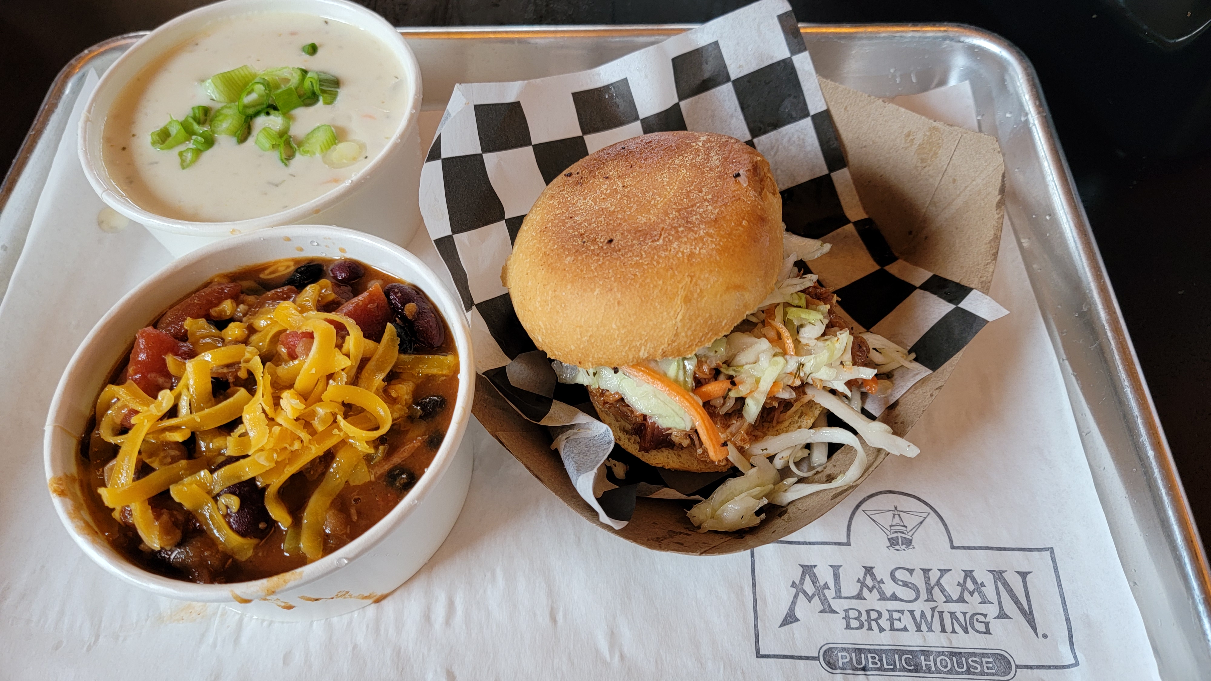 For food, we had a progressive lunch, starting with a pulled pork sandwich, a bowl of chili and a cherry grapefruit hard seltzer at the Alaskan Brewing Public House. In the covered pavilion, raucous groups dried out and downed pints poured as heavily as the rain outside. A mad dash through the puddles took us back to Devil’s Club Brewing, home to such specialties as the Rainforest Mixed Culture Saison and the Jellyfish Fields Jelly Donut Ale. Cruise crowds or not, Devil’s Club packs to the gills with eager imbibers and their rowdy friends. Après-bière, lunch 2.0 was halibut tacos and sockeye salmon tots from Deckhand Dave’s, one of the spots from our travels of which I still daydream today.