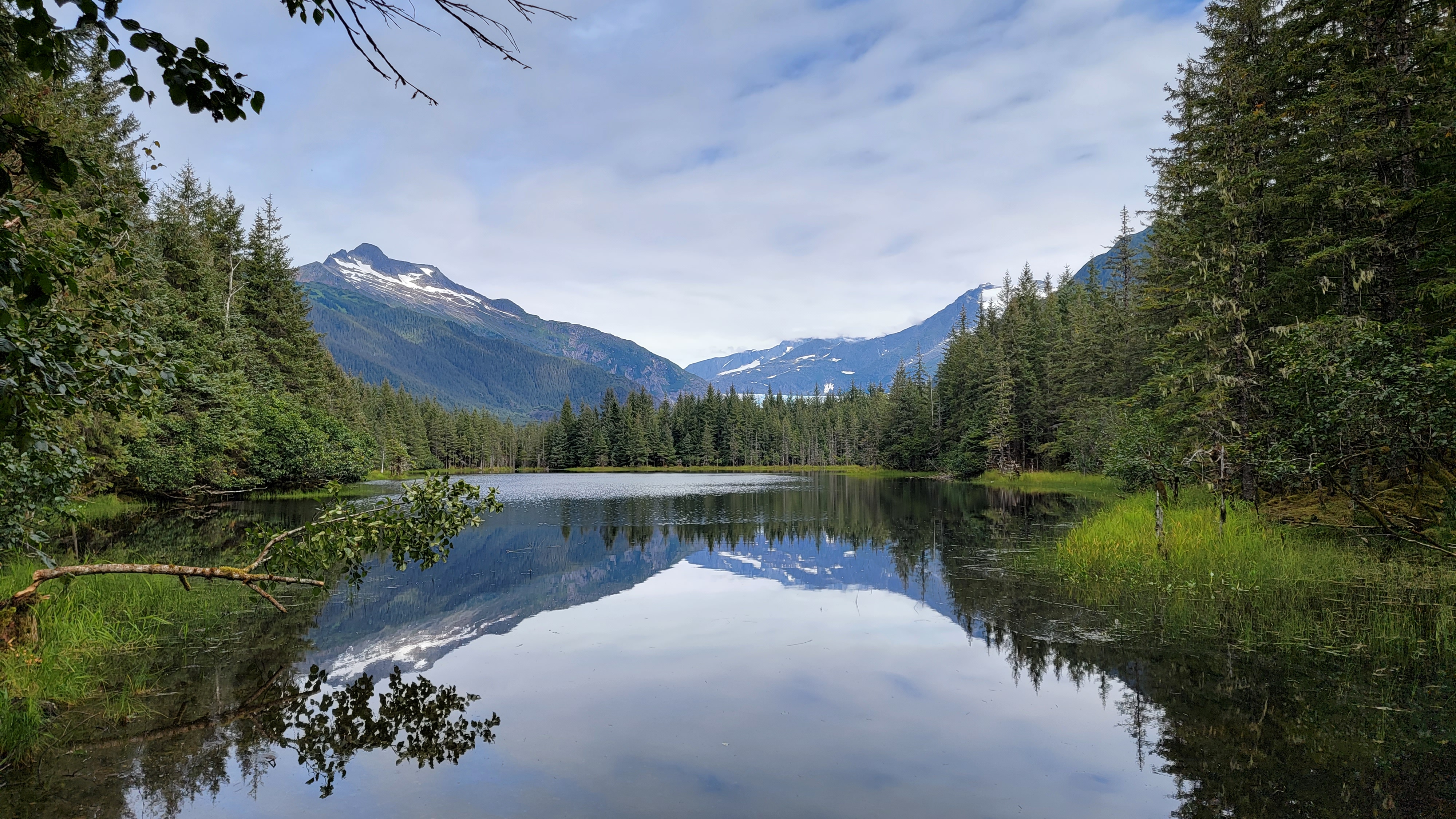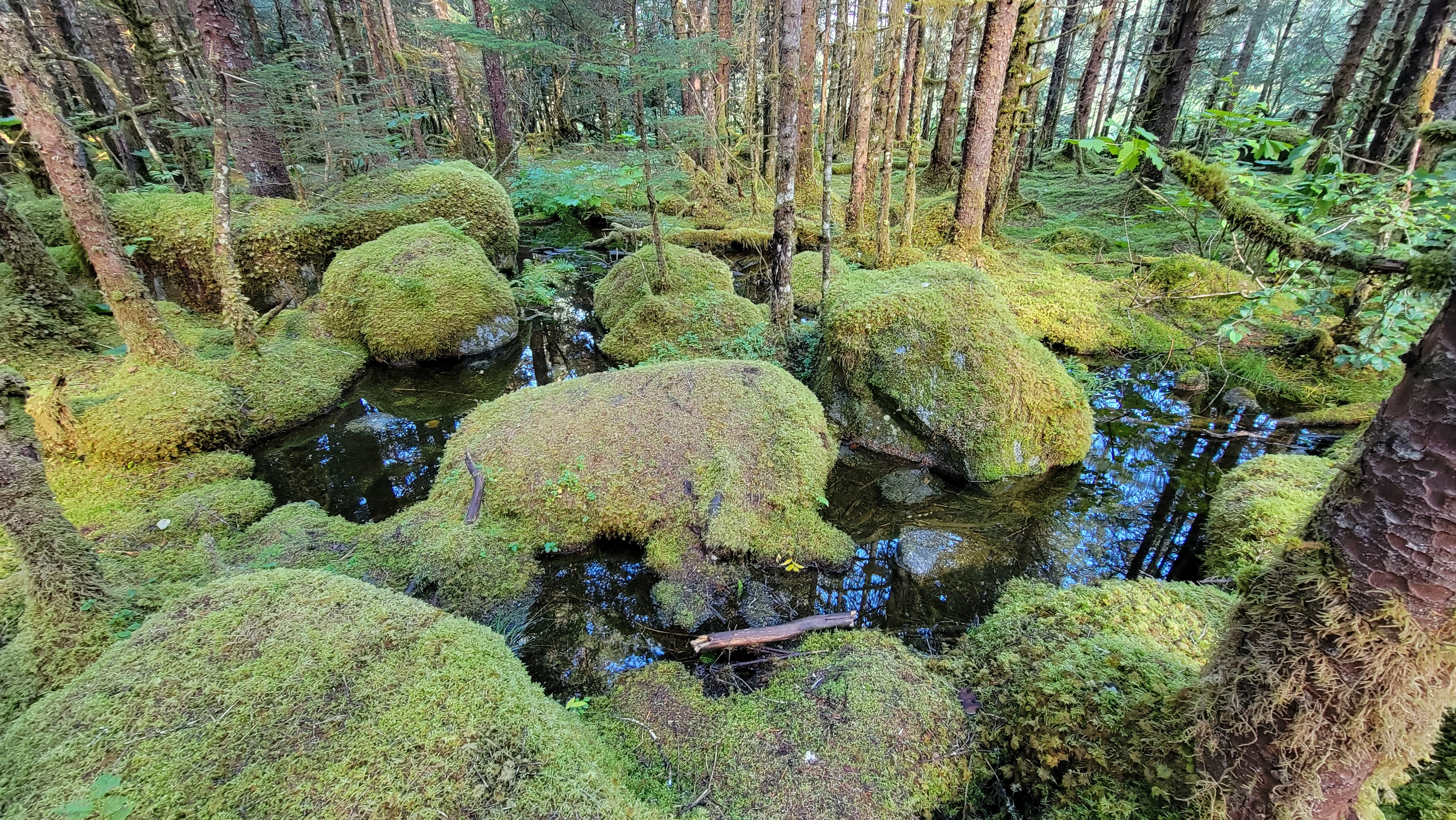Back down the road, we cut into the woods at the Dredge Lakes Trailhead, crisscrossing the young forest and admiring glassy lakes. Beaver dams and the recent rains both led to some areas of trail being impassable due to water. As the trail ended at the U.S. Forest Service Ranger Station, we spotted another bus stop, from which we made the quick jaunt to Forbidden Peak Brewery, home of the Cranrazz Lager, Yuzu Blonde and Red Spruce Ale. With harbor views and skies beginning to cloud, we toasted the final moments of our time in Juneau; first thing the next morning, we were back at the airport, ready to catch the quick jump to Ketchikan.