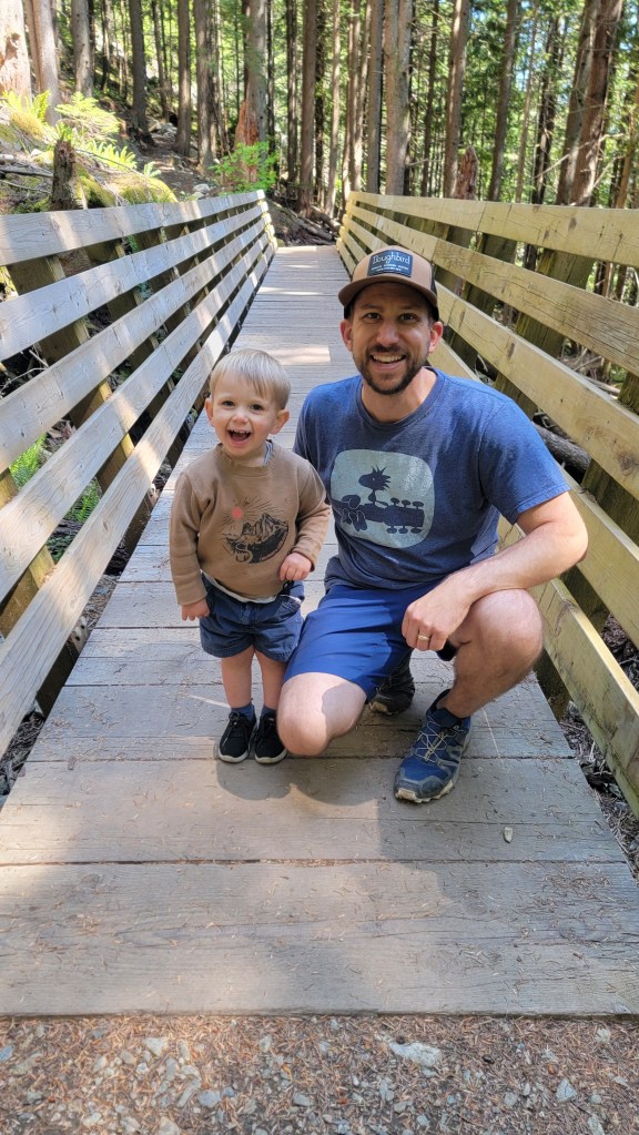 Getting to the hike was simple, and the parking area had only a few vehicles in it. Kjirsti fed our baby, and I quickly made our lunch, as it was nearly noon at this point (so much for starting our hike at 10). We eat, get our toddler in the backpack and set off up the trail. The hike itself was pretty standard, gently ascending old forest road for a bit, then some gradual switchbacks. Walter fell asleep in the backpack and was bonking his head against mine for the middle mile, until I couldn’t handle it anymore, and took the pack off. Since he is potty training, we decided this would be a good pit stop for him. Bad idea.